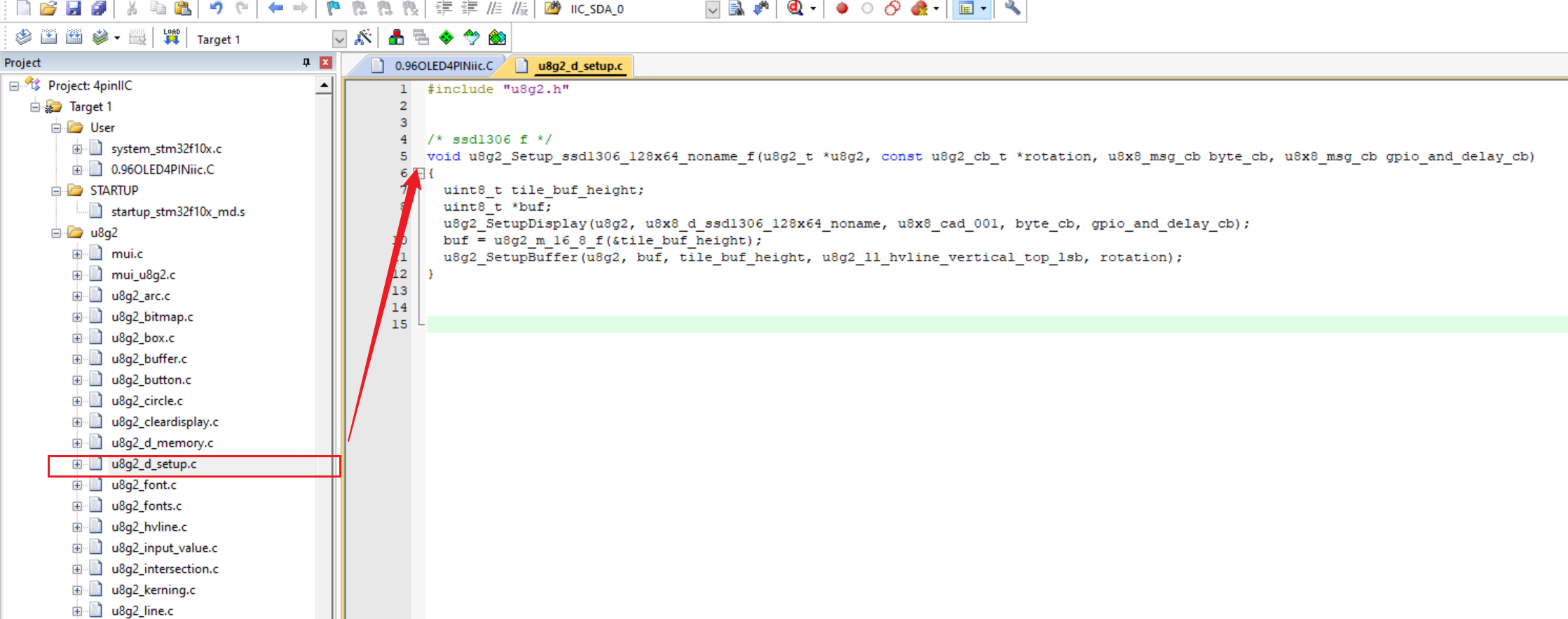精简U8g2_d_setup.c,只保留u8g2_Setup_ssd1306_i2c_128x64_noname_f函数(370行)